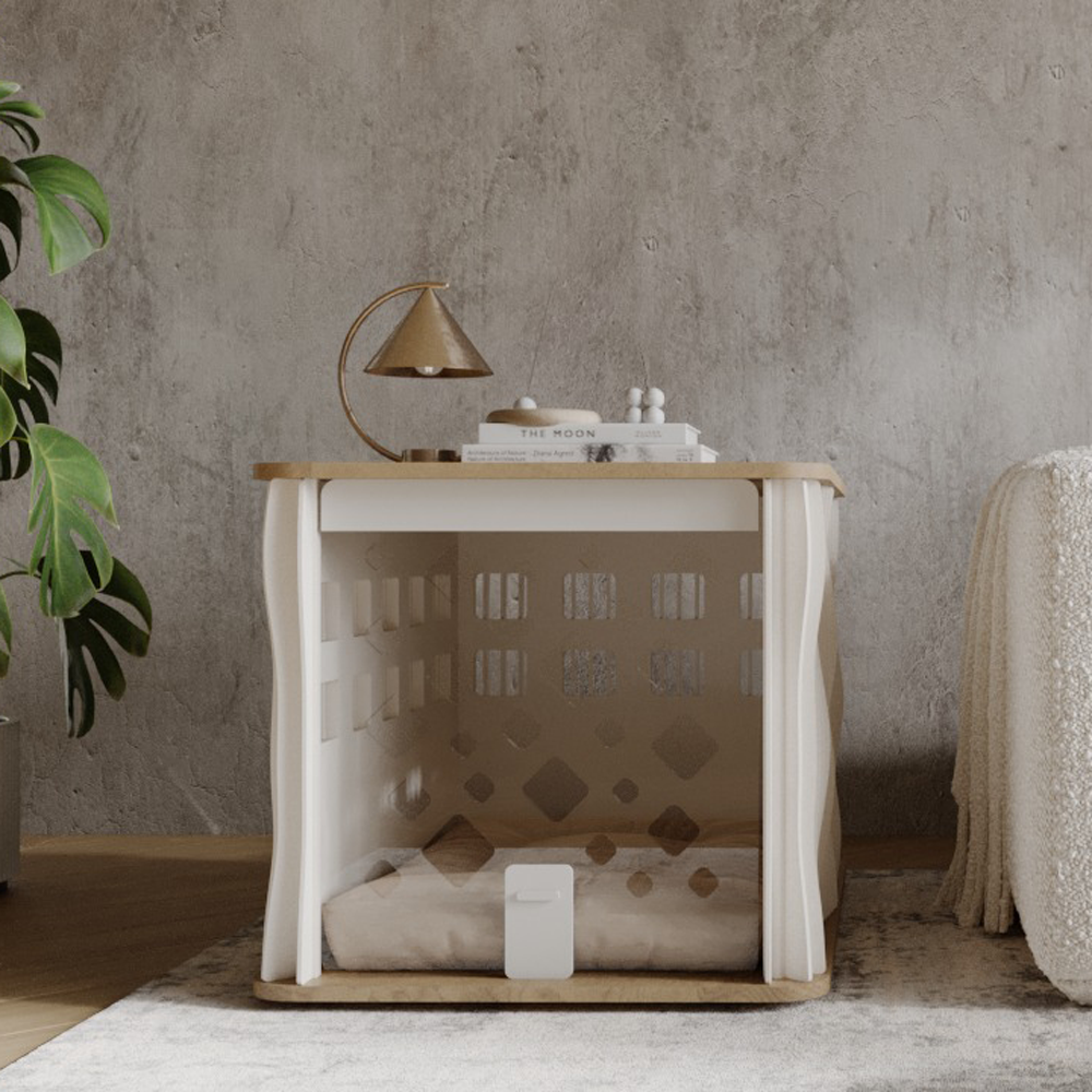 Elevate your home's style with a dog crate that looks like a chic piece of furniture. Crafted from high-quality, durable wood with a smooth, non-toxic finish, this modern crate doubles as a side table or end table. The soft, padded mat inside provides a comfortable resting surface that is both supportive and easy to clean.